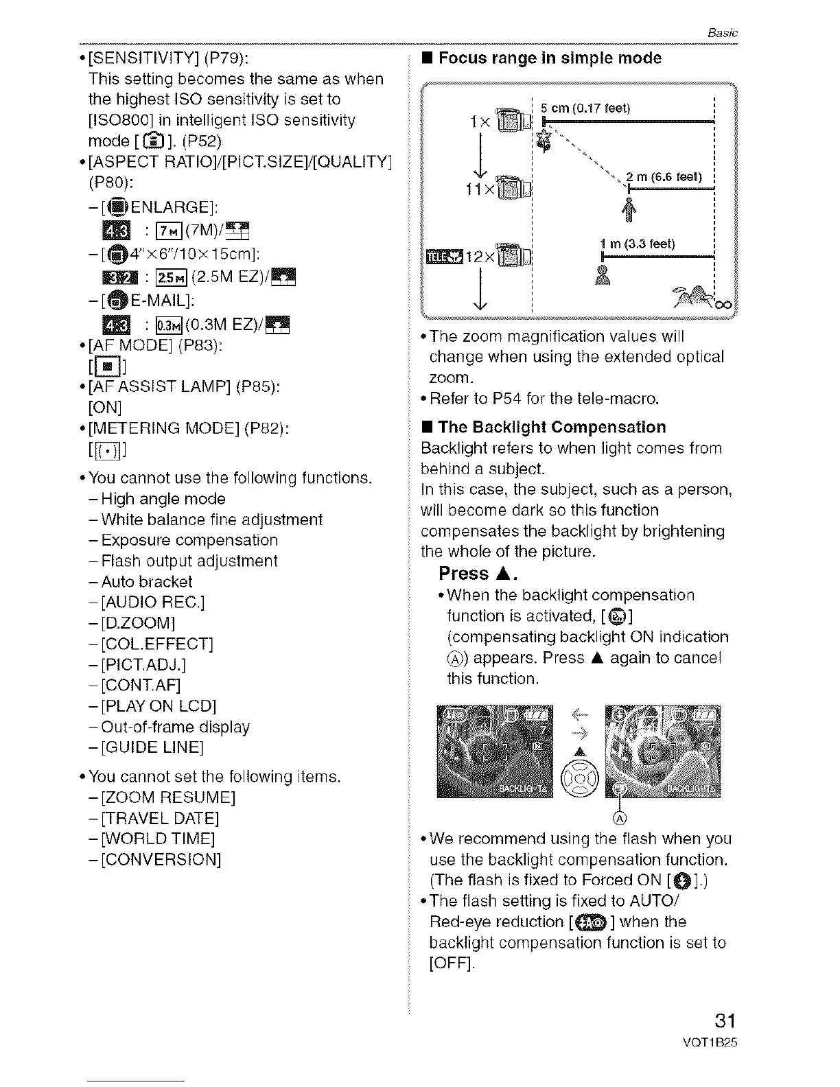 • Focus range in simple mode• [SENSITIVITY] (P79):