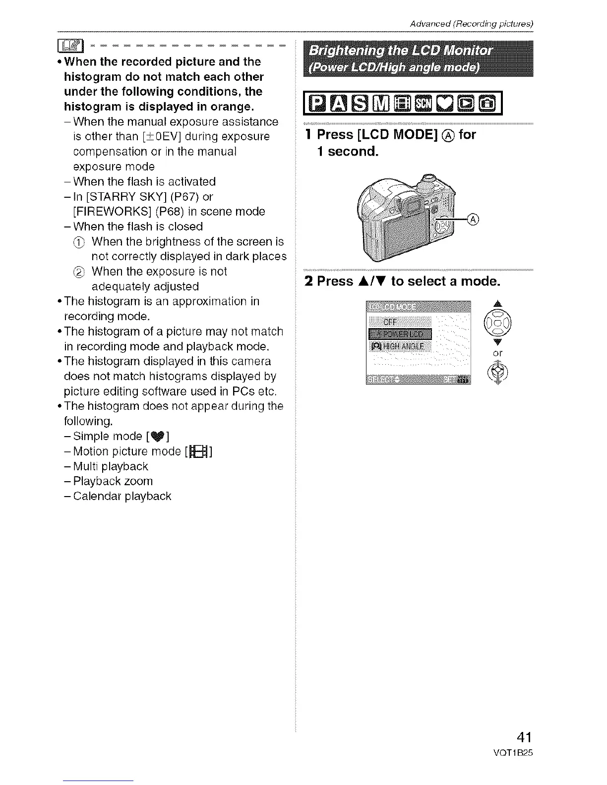 1 Press [LCD MODE] Q for