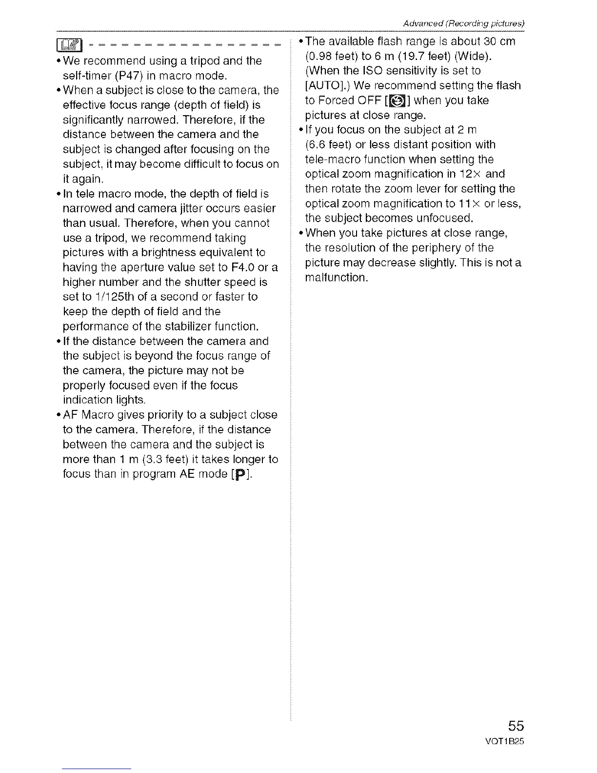 self-timer (P47) in macro mode.
