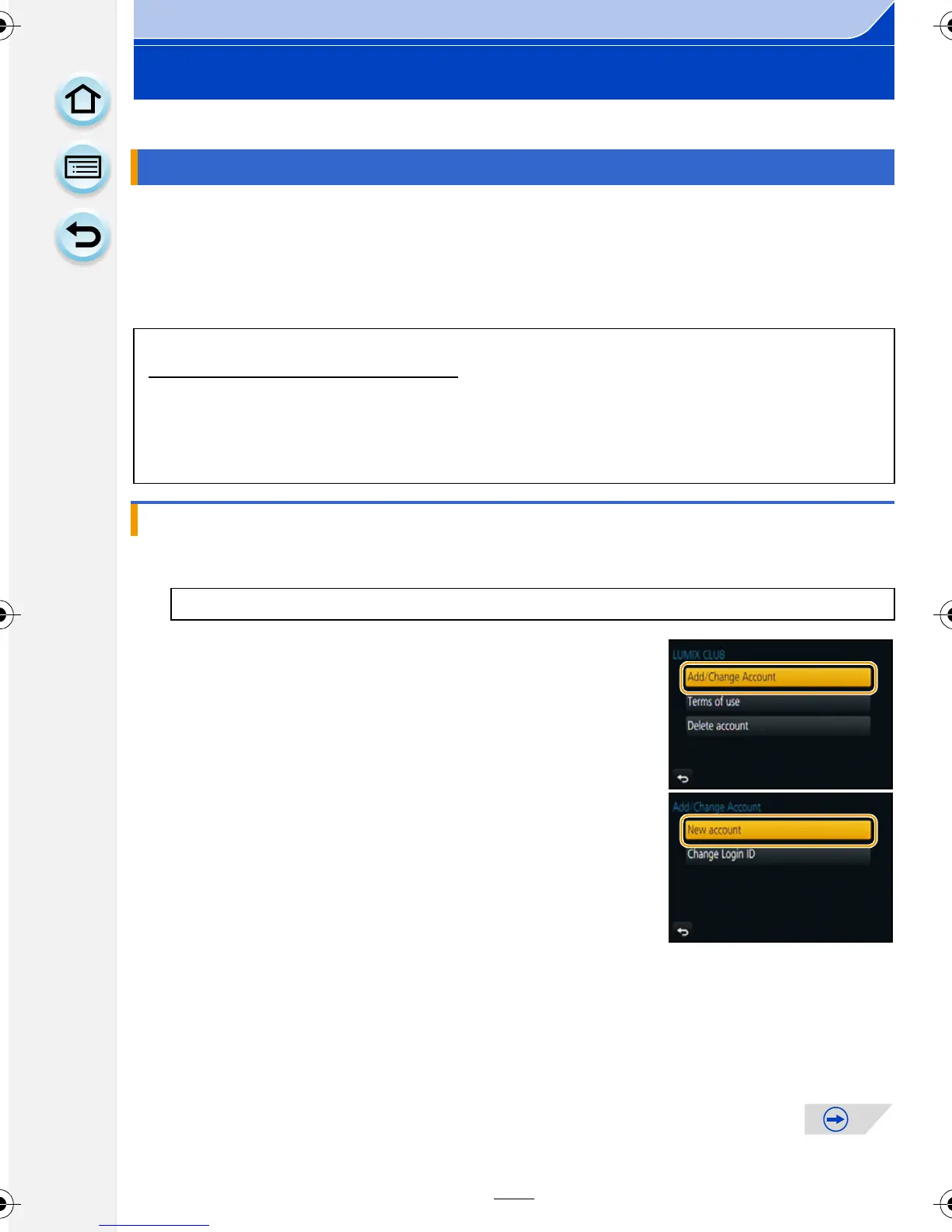 [MENU] > [Setup]>[Wi-Fi]>[Wi-Fi Setup]>[LUMIX CLUB]