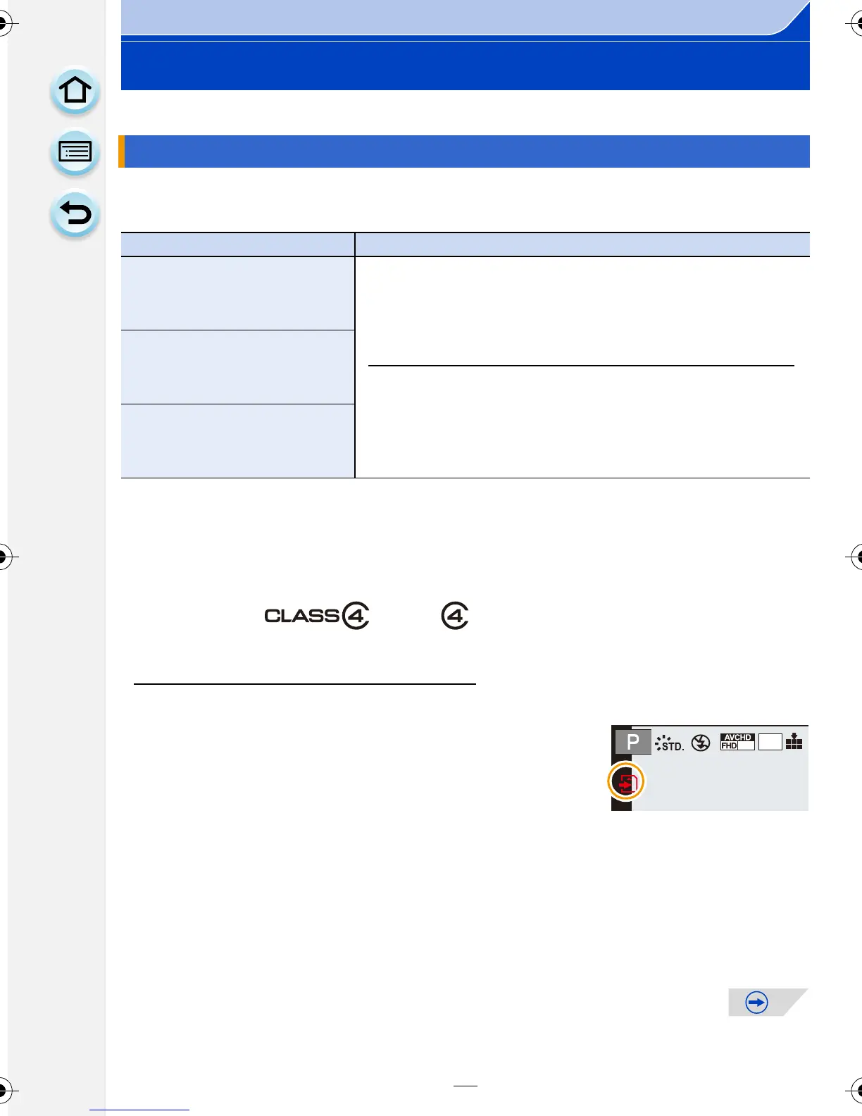 “Class 4” or more for [AVCHD]/[MP4] motion picture recording.