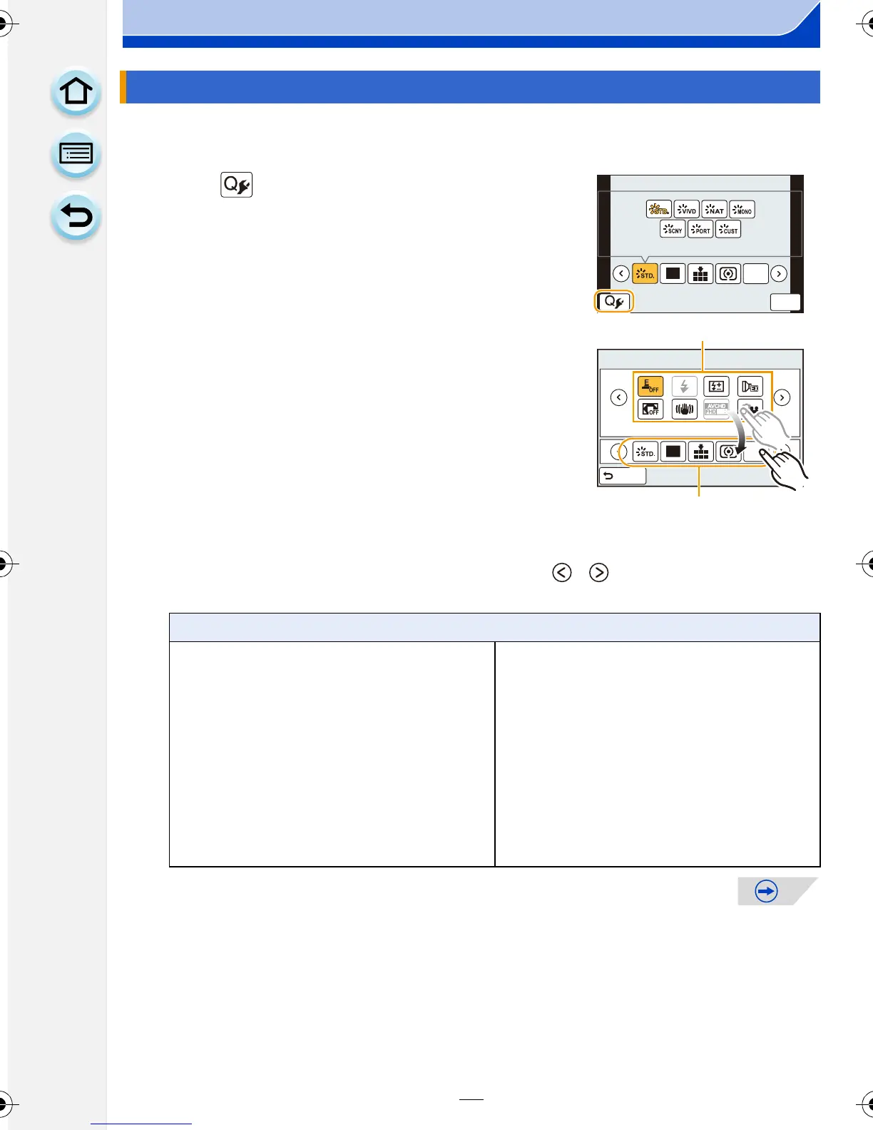 • Menu item or Settings can be switched by touching [ ]/[ ].