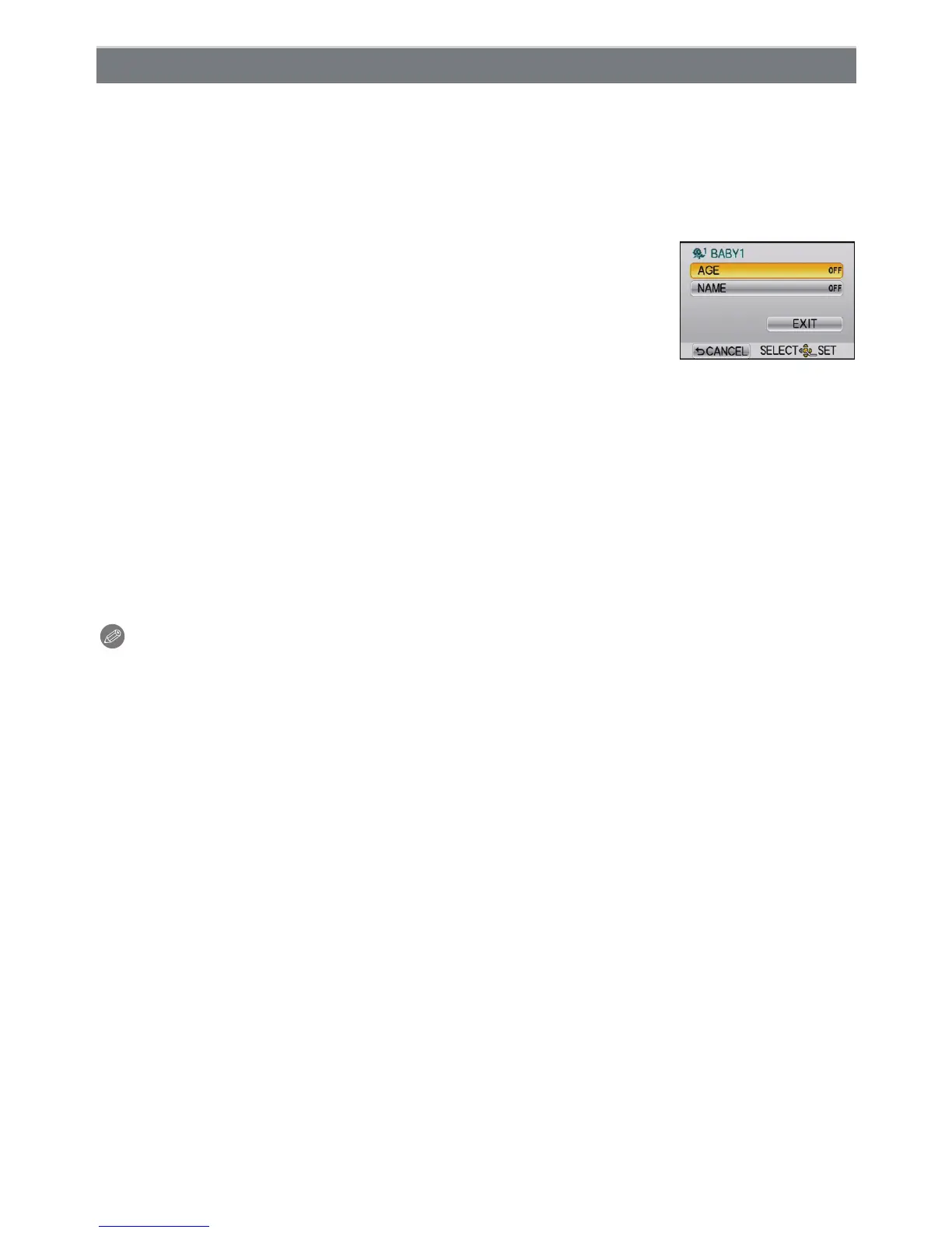 • If [AGE] or [NAME] is set to [OFF] even when the birthday or name has been set, the age or
