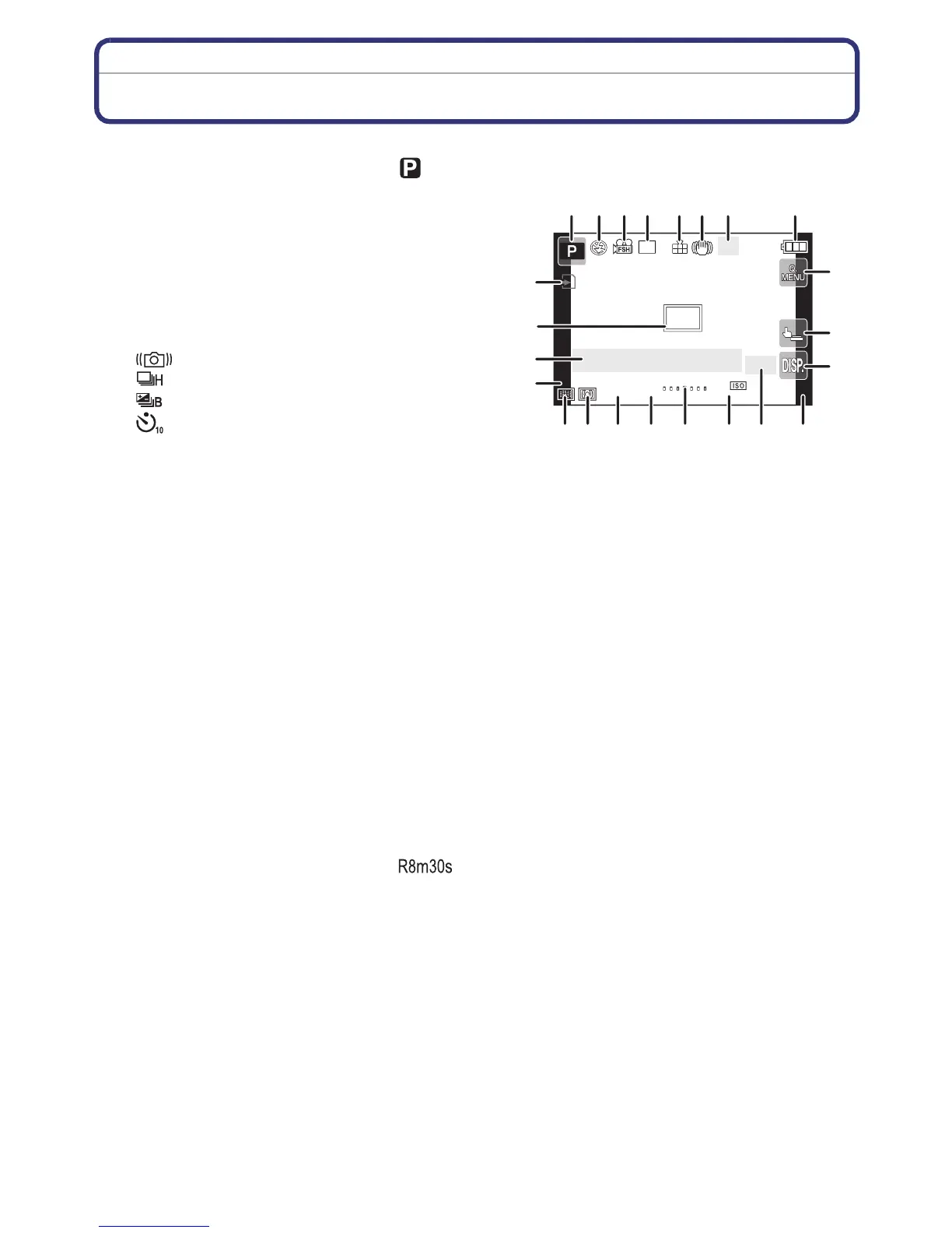 15 Exposure compensation value (P76)/Brightness (P39)/Manual Exposure Assistance