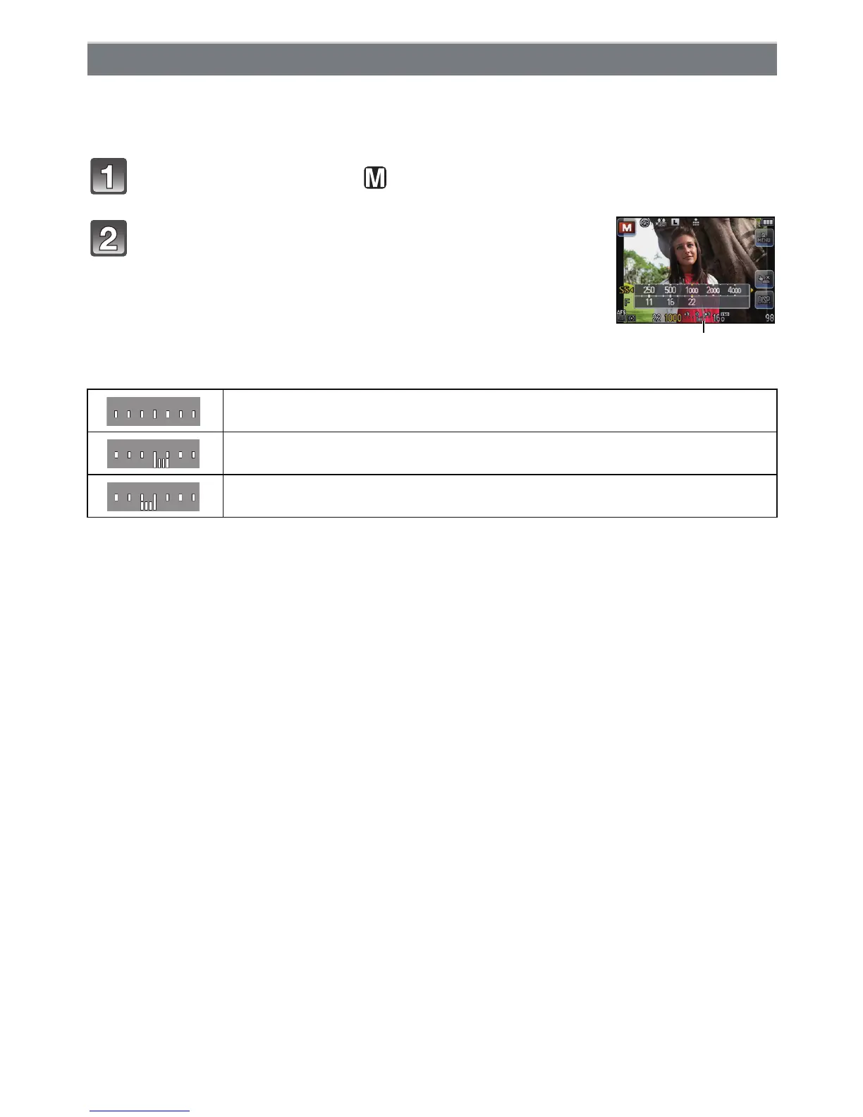 Determine the exposure by manually setting the aperture value and the shutter speed.