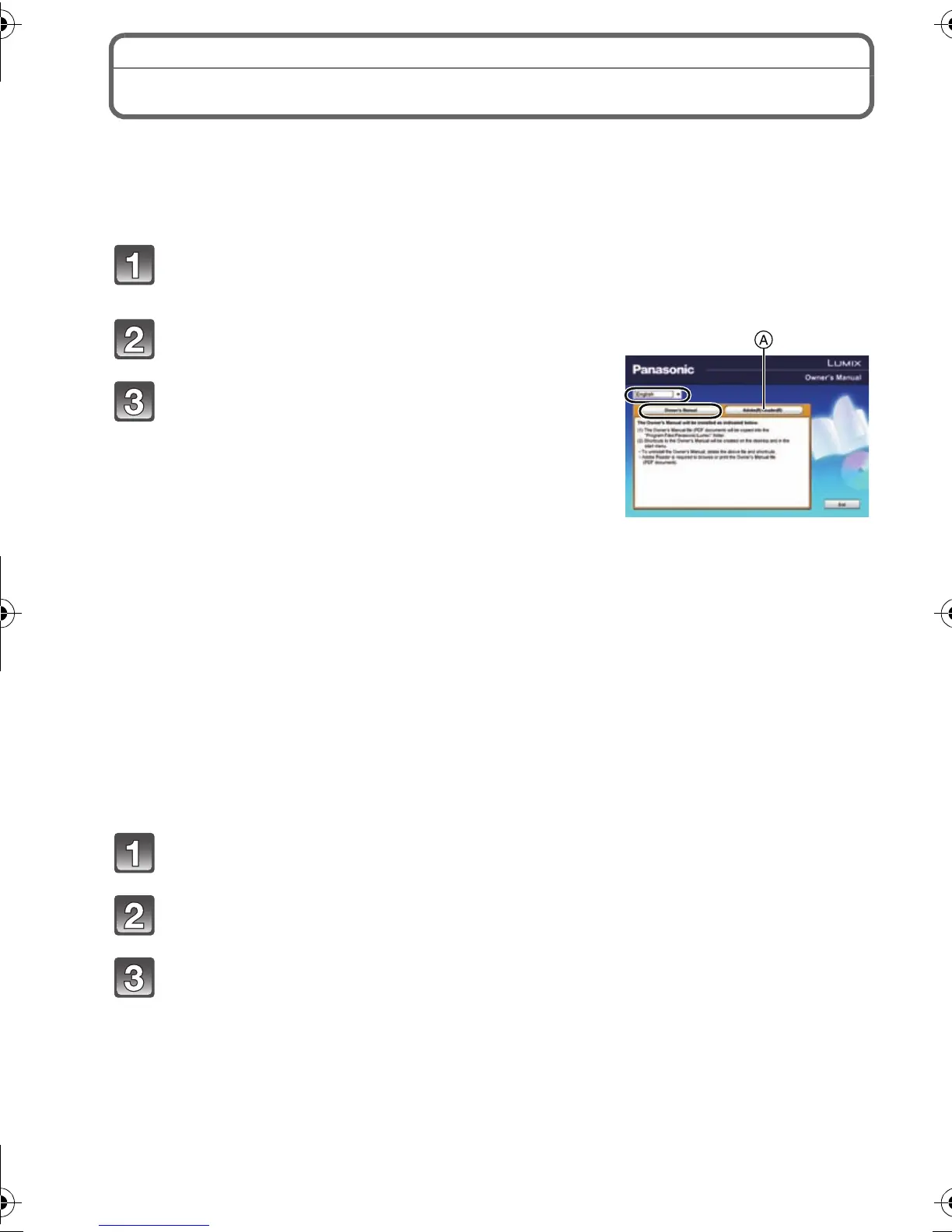 Insert the CD-ROM containing the Owner’s Manual (supplied), click A and then follow the