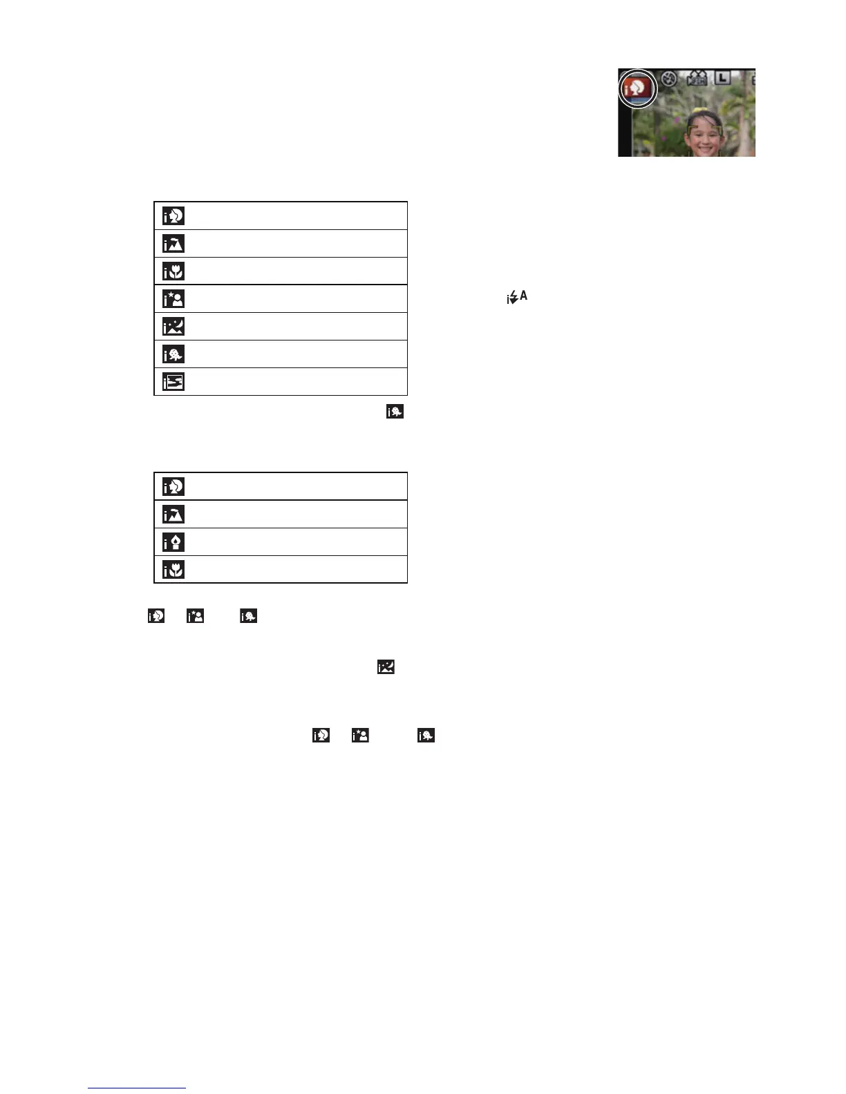 When [ ], [ ] or [ ] is selected, the camera automatically detects a person’s face, and it