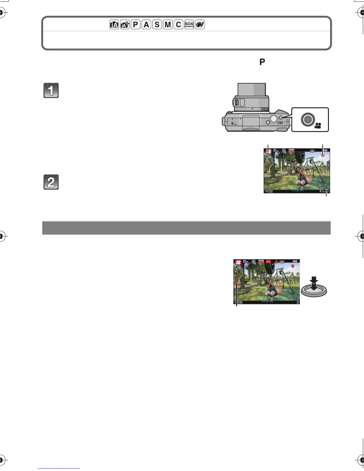 • Screen here is an example of when the Recording Mode is set to [ ] (Programme AE