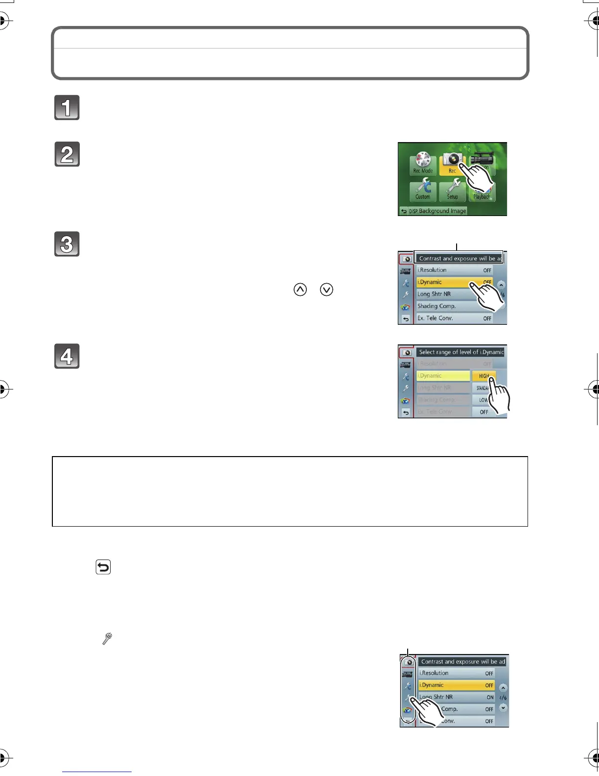 Description of the icon is displayed by touching the icon for menu item/setting in steps 3