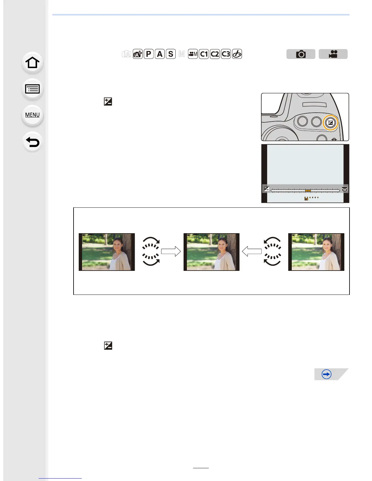• The Exposure Compensation value can be set within a range of j5EV to i5 EV. When