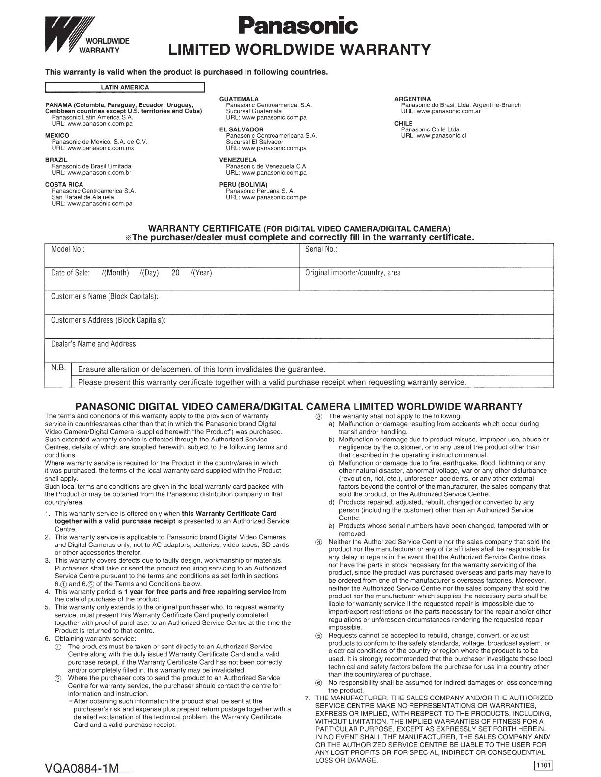 WARRANTY CERTIFICATE (FOR DIGITAL VIDEO CAMERA/DIGITAL CAMERA)