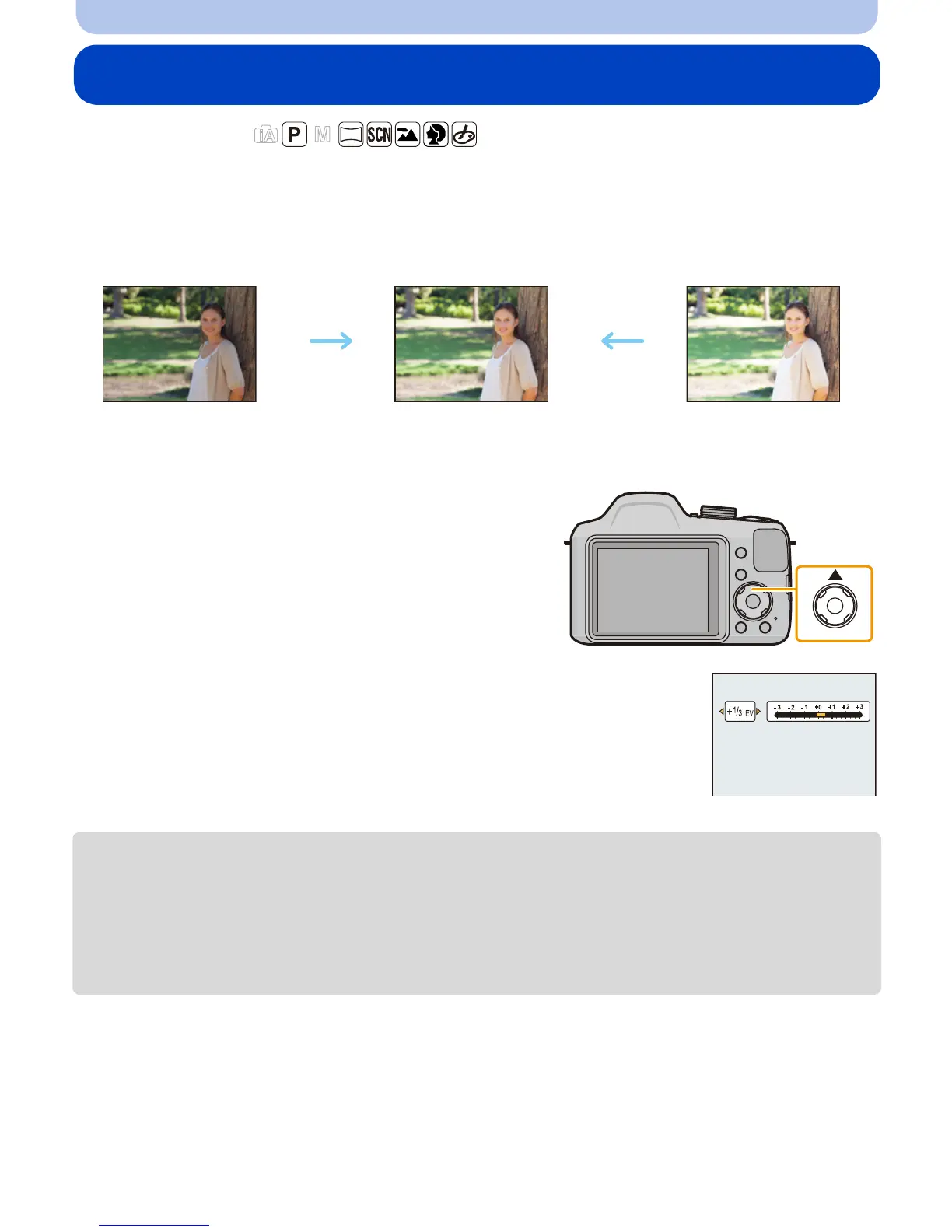 • “EV” is an abbreviation of “Exposure Value”, a unit indicating the amount of exposure.