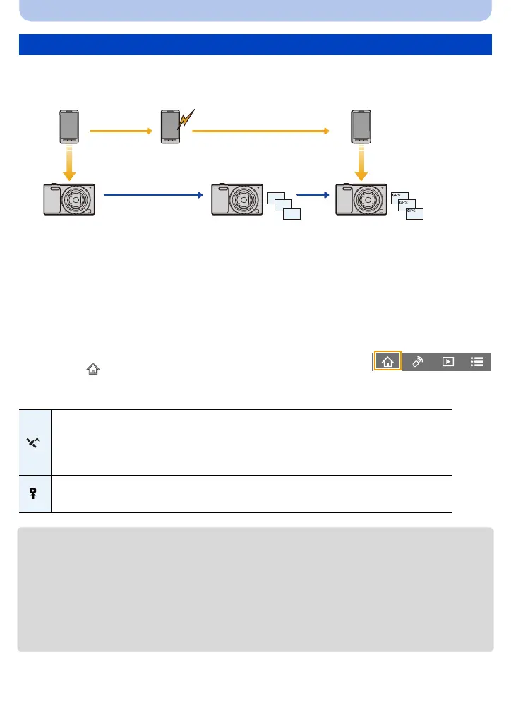You can write location information sent from a smartphone on images by using [Location Logging] in