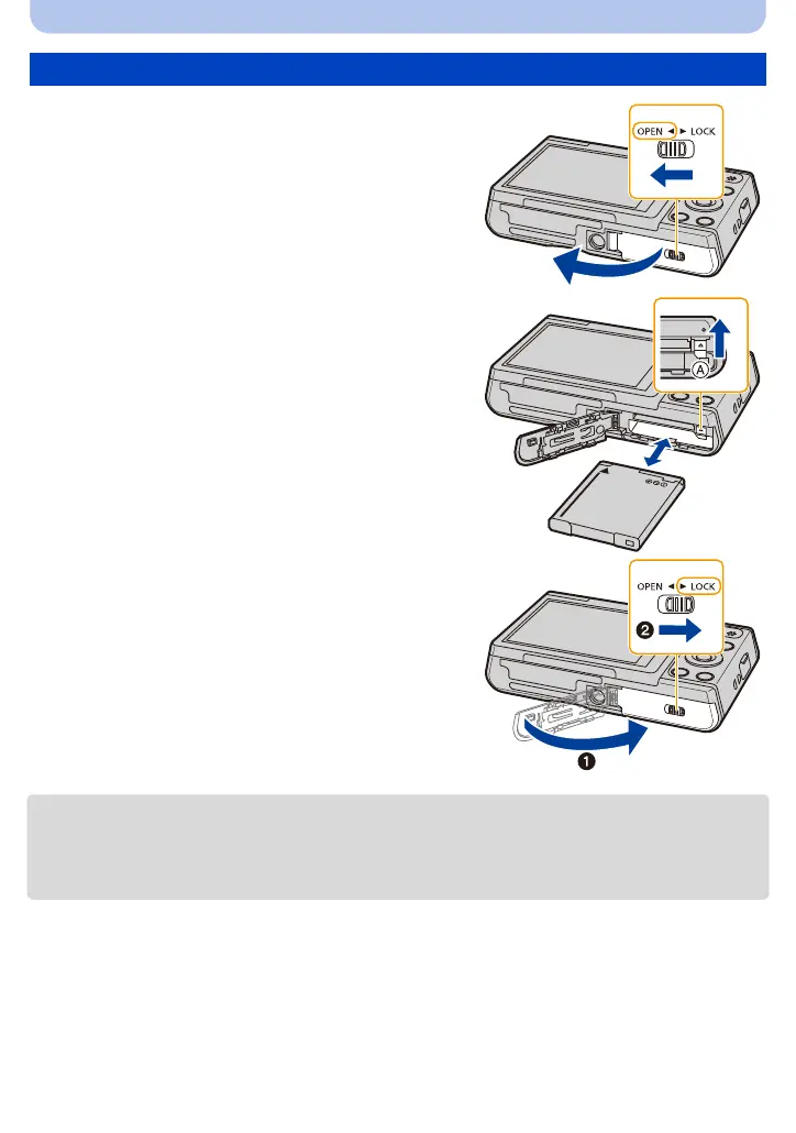 • Turn the camera off and wait for the “LUMIX” display on the monitor to clear before removing the