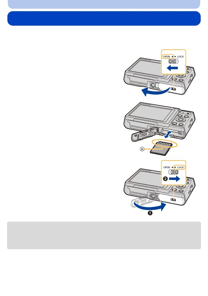 • Turn the camera off and wait for the “LUMIX” display on the monitor to clear before removing the