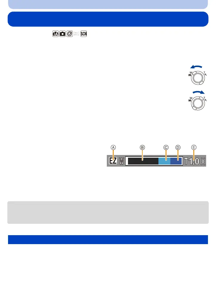 Example of display when Extra Optical Zoom (EZ), Intelligent Zoom and Digital Zoom are used