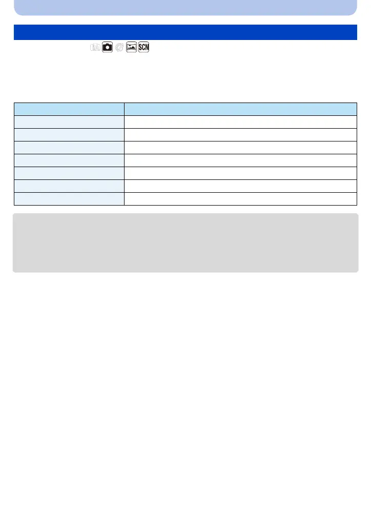 • The White Balance setting for a Scene Mode returns to [AWB] when the Scene Mode is changed.