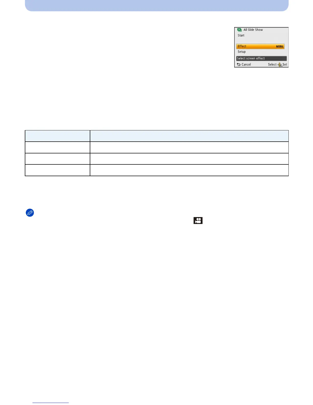 • Some [Effect] will not operate when playing back pictures displayed vertically.
