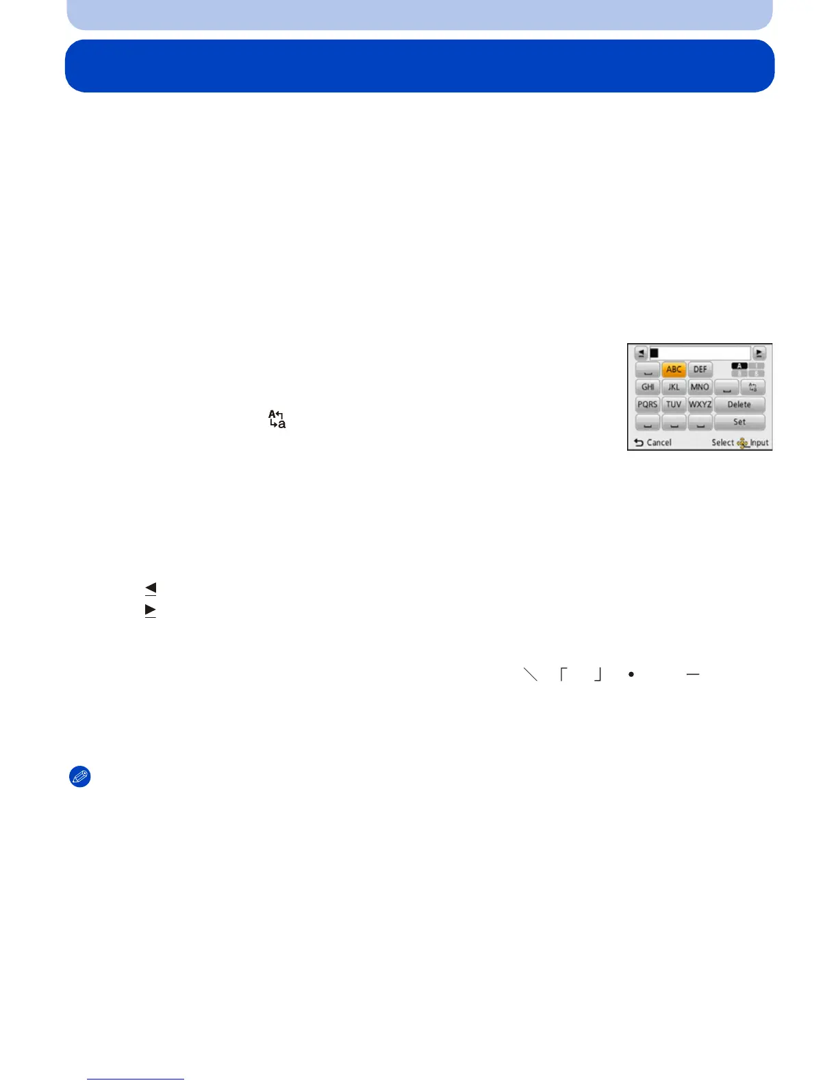 • Move the cursor to [ ] and then press [MENU/SET] to switch text
