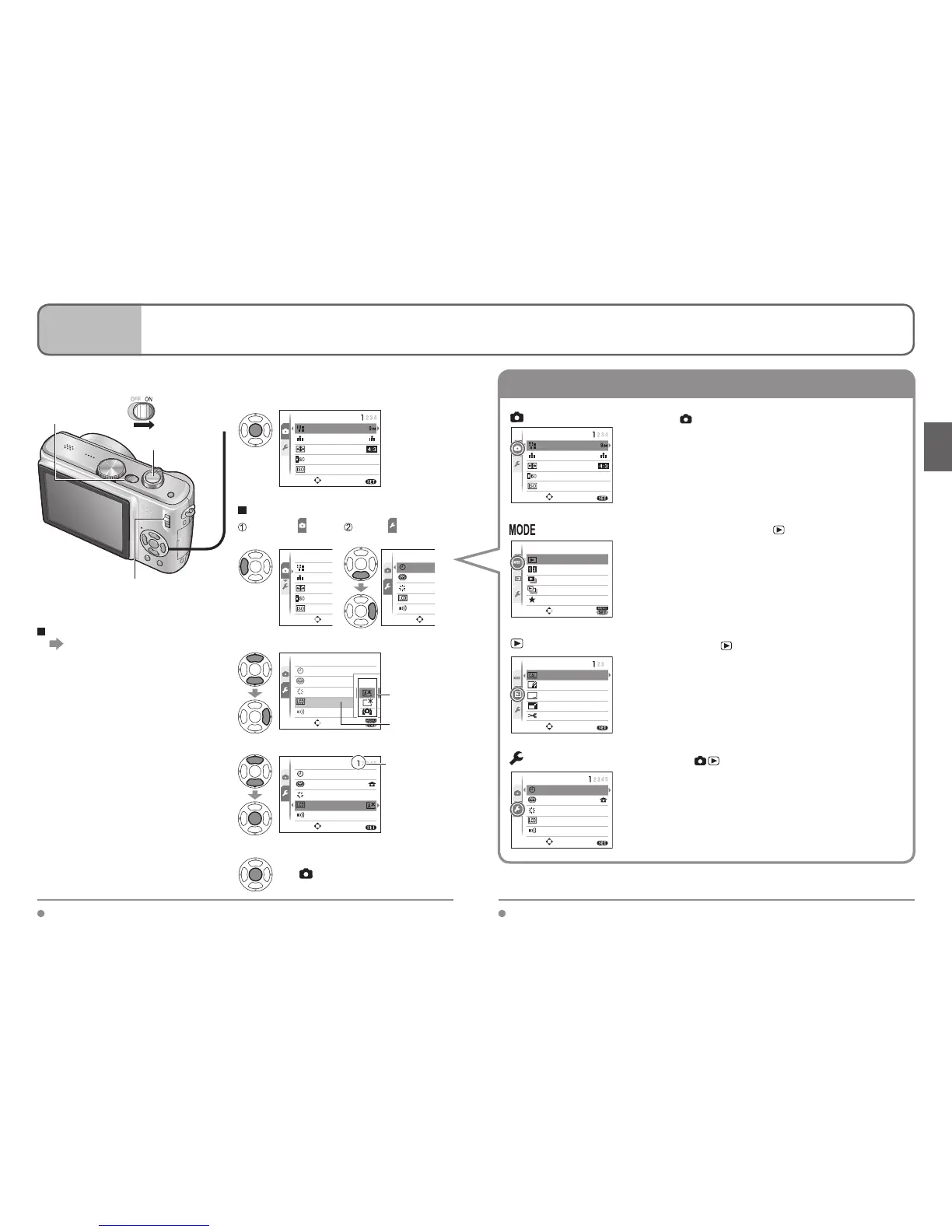 Settings display may vary according to items. Menu items displayed vary according to mode dial setting.