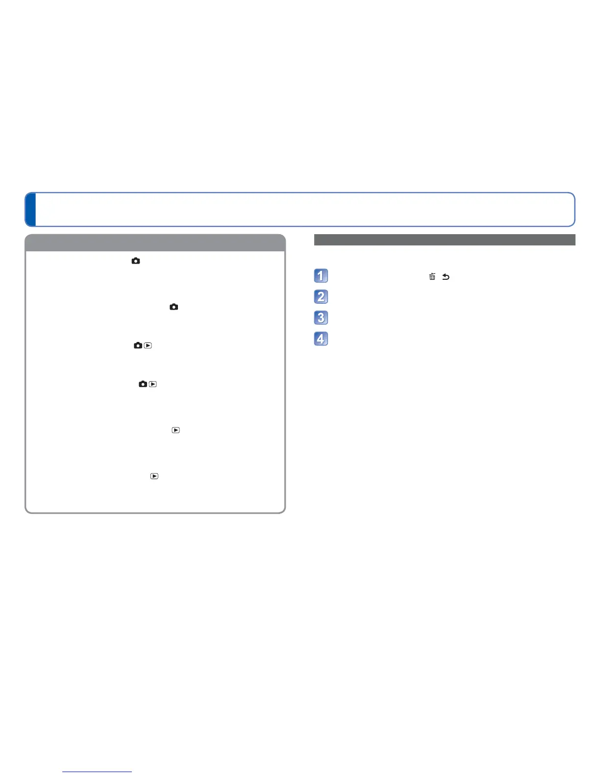 • Displays settings such as White Balance, Sensitivity, Aspect Ratio, and Picture