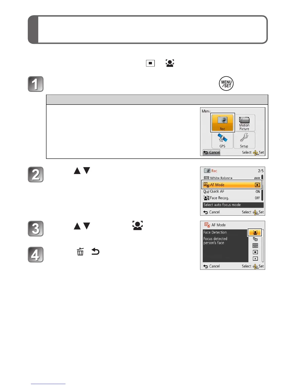 Example: Setting [AF Mode] from to in the [Program AE] Mode