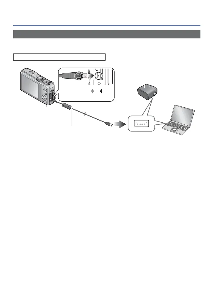 Connect the AC adaptor (supplied) and the camera using the USB connection cable