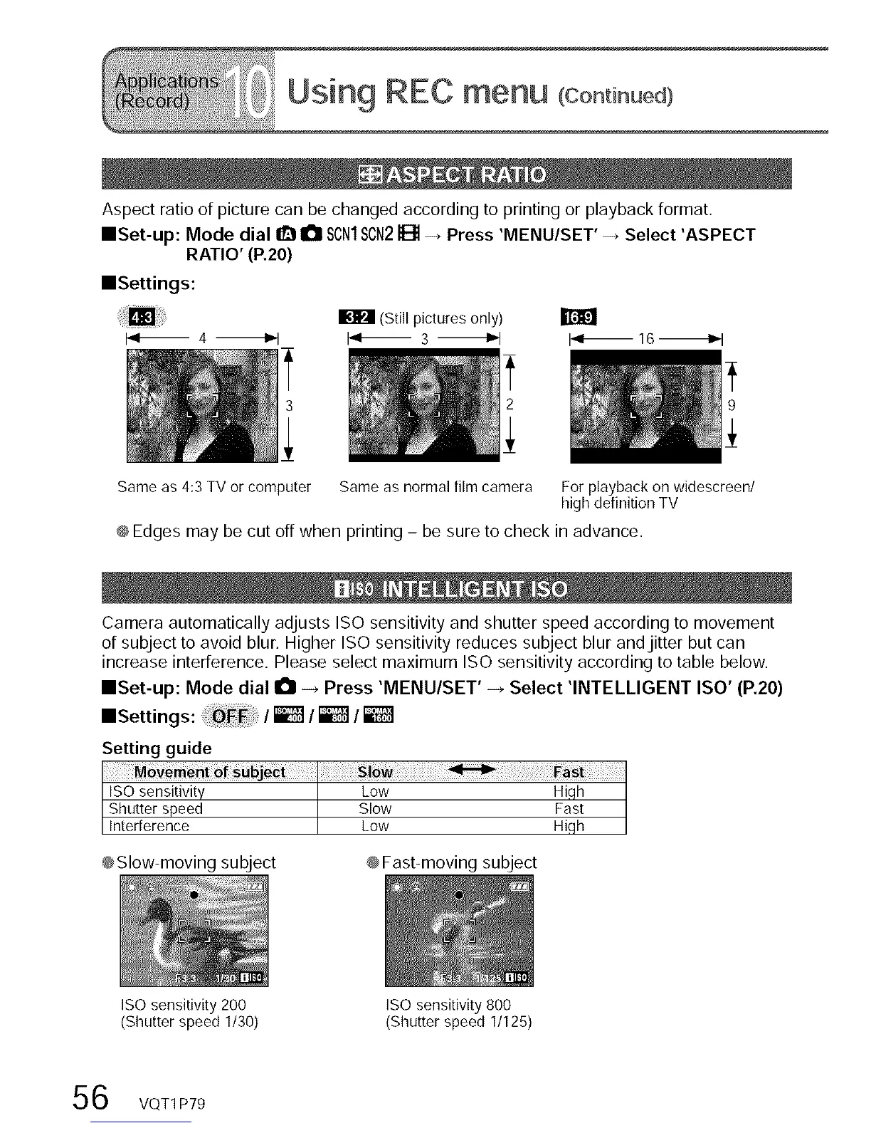 • Set-up: Mode dial O -+ Press 'MENU/SET' -+ Select 'INTELLIGENT ISO' (R20)