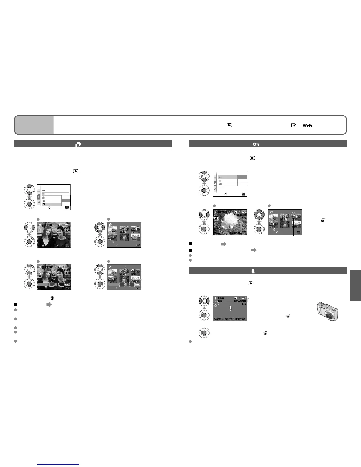 Set-up: Press ‘MENU/SET’ → ‘ PLAYBACK menu’ → Select ‘PROTECT’ (P.20)