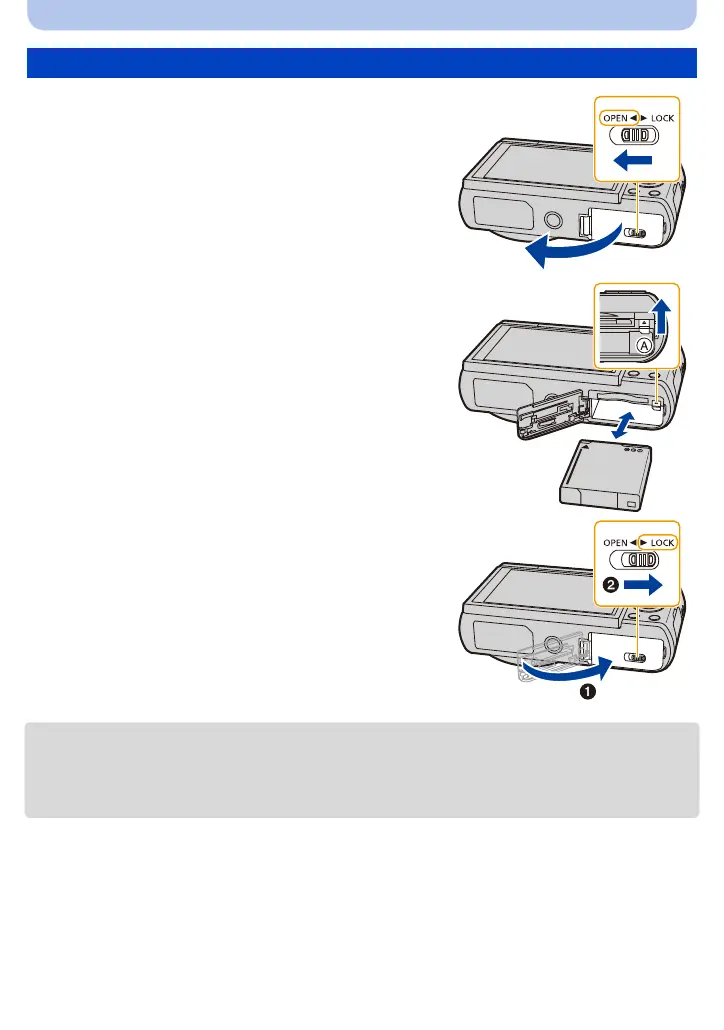 • Turn the camera off and wait for the “LUMIX” display on the monitor to clear before removing the