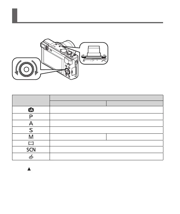Press to switch between aperture adjustment and shutter speed adjustment.