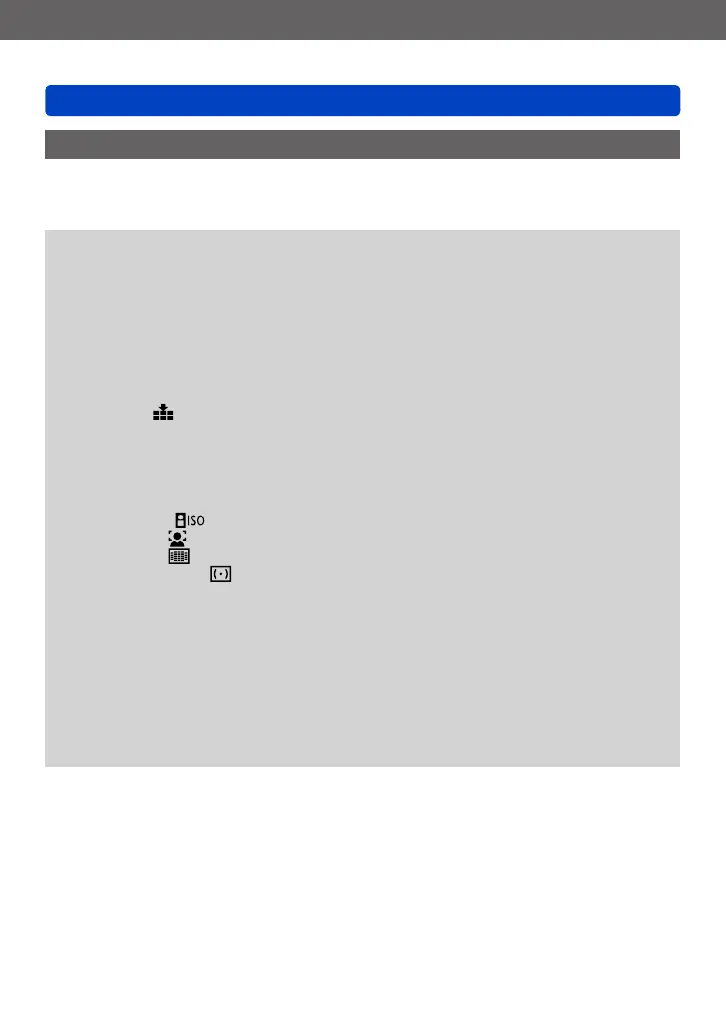 • [Beep] on the [Setup] menu ([Beep Level] and [Shutter Vol.] only)