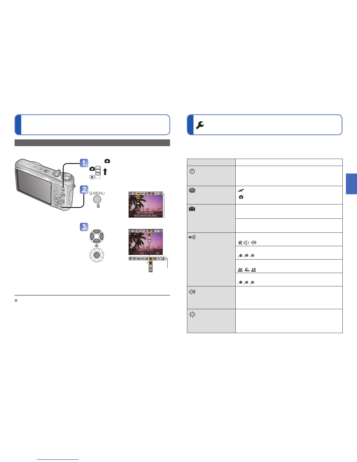 Make general camera settings such as adjusting the clock, extending the battery life,