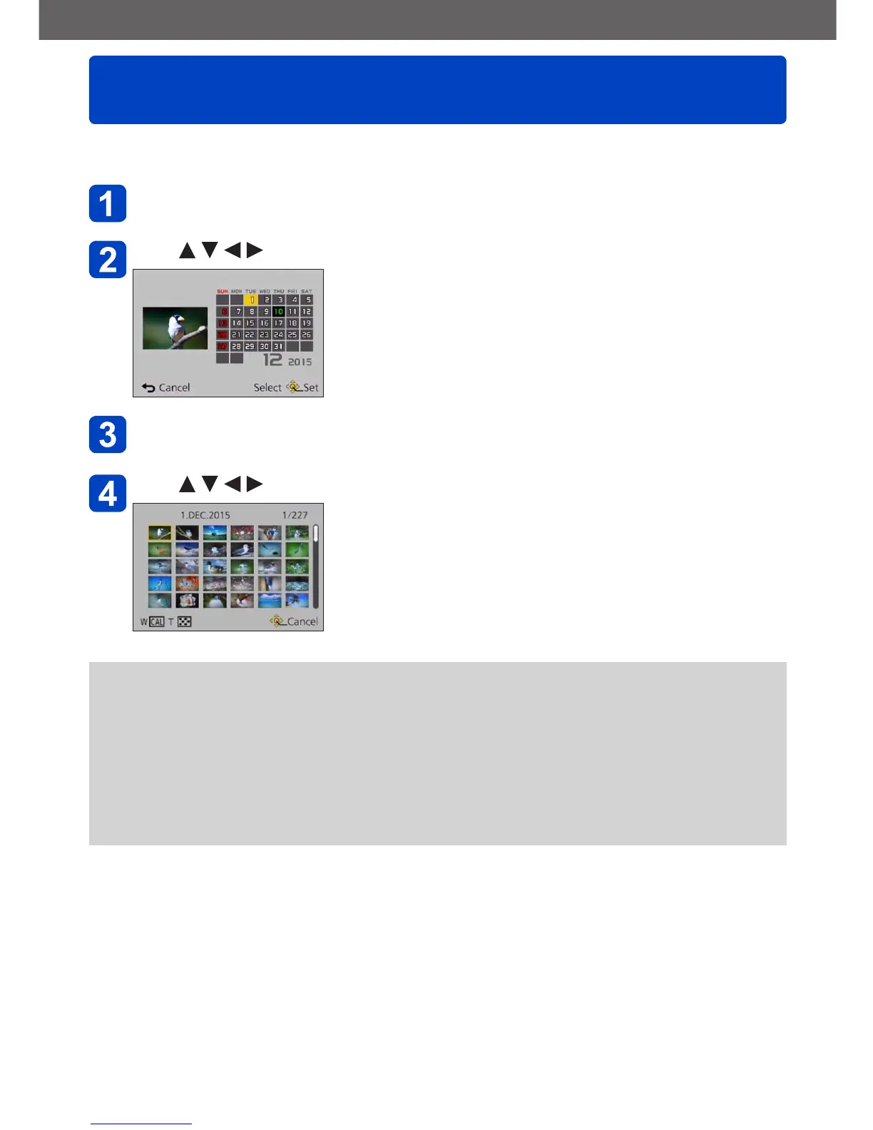 Select [Calendar] from the [Playback Mode] menu (→163)