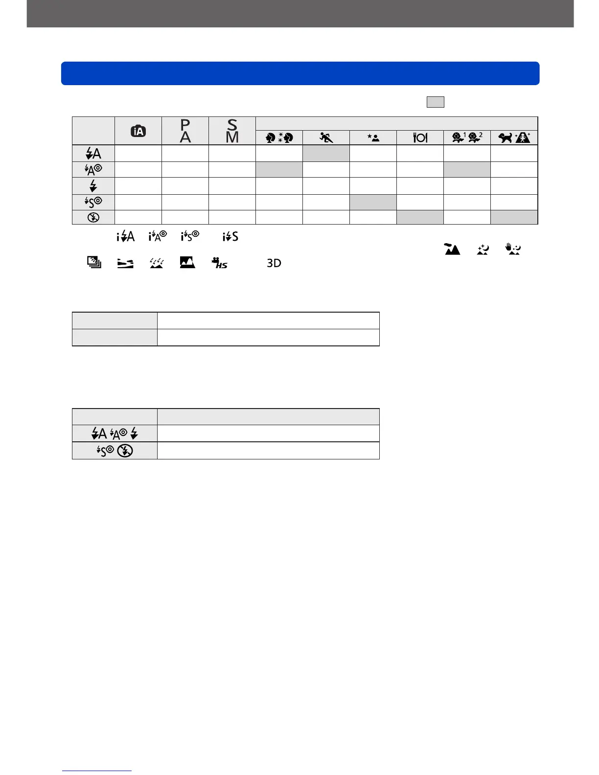 Shutter speeds for each flash mode