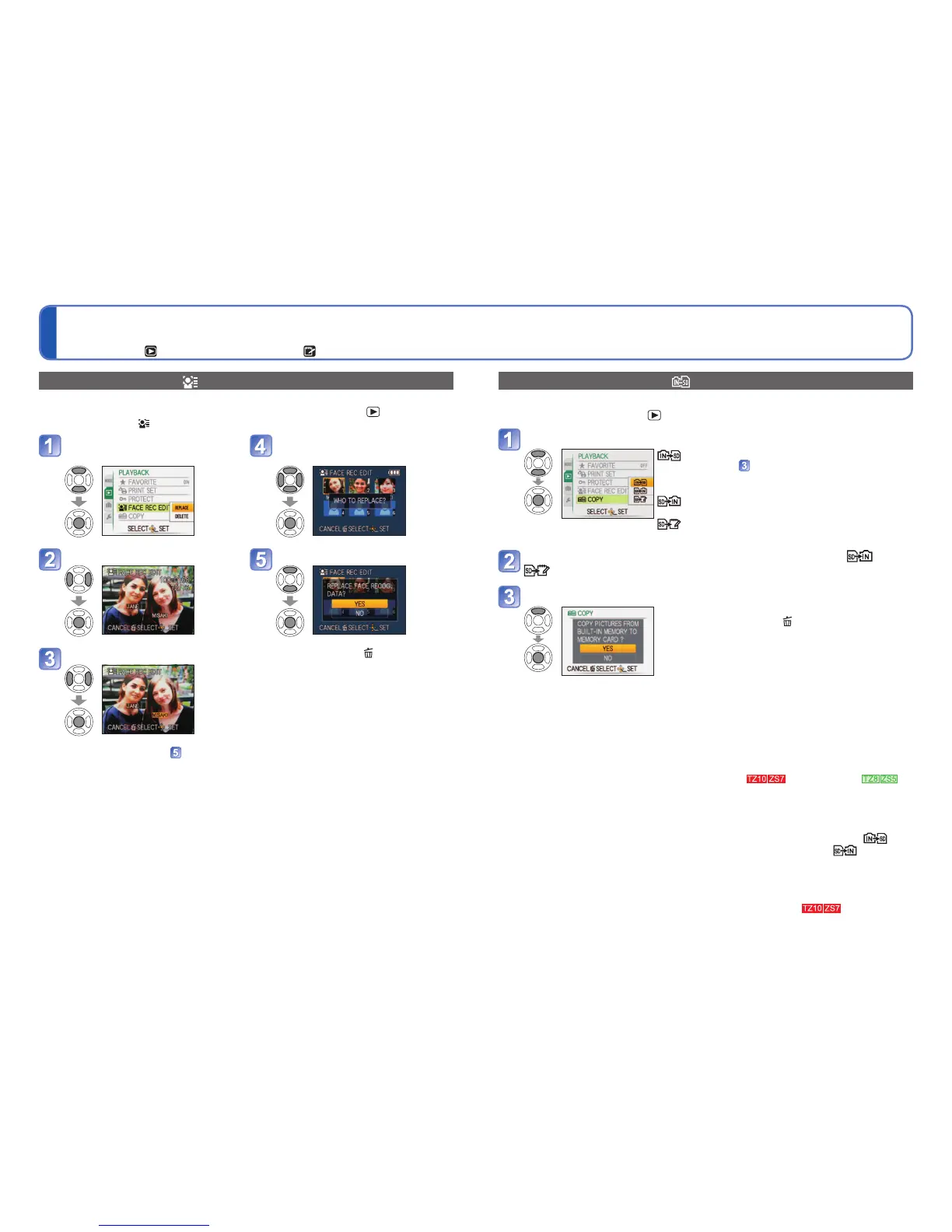 Set-up: Press [MENU/SET] → [PLAYBACK] menu → Select [COPY]