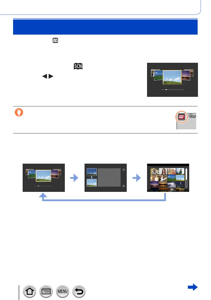 • When it is set to the guide display, detailed explanations and tips for each scene are displayed.