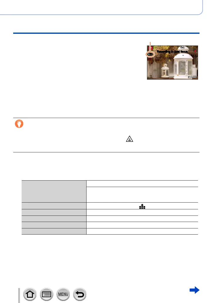 • You can also cancel the [Post Focus] by selecting [OFF] of [Post Focus] in [Rec] menu.