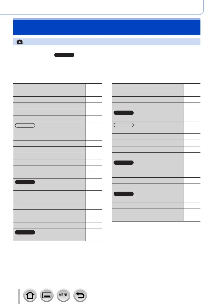 • The [Photo Style], [Filter Settings], [Sensitivity], [AF Mode], [AFS/AFF/AFC],