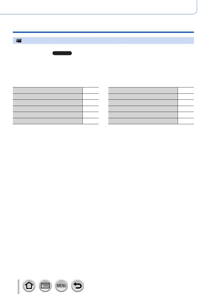 • The [Photo Style], [Filter Settings], [Sensitivity], [AF Mode], [AFS/AFF/AFC],