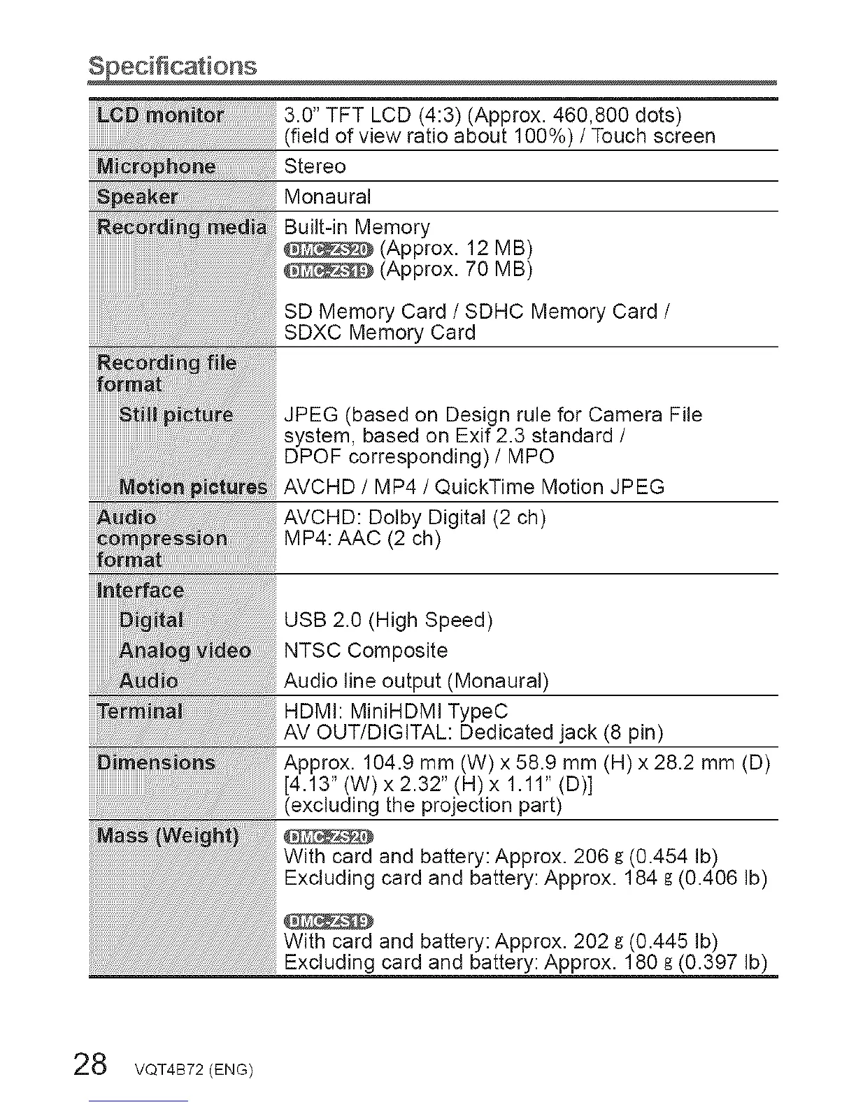 Excluding card and battery: Approx. 184 g(0.406 Ib)