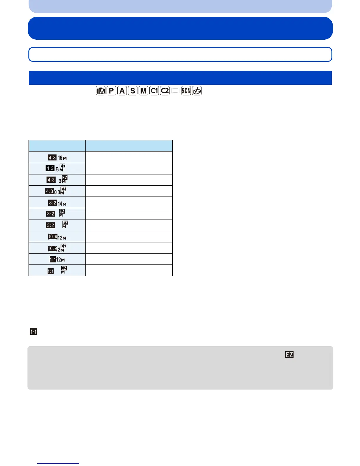 • In specific modes, Extended Optical Zoom cannot be used, and the picture size for [ ] is not