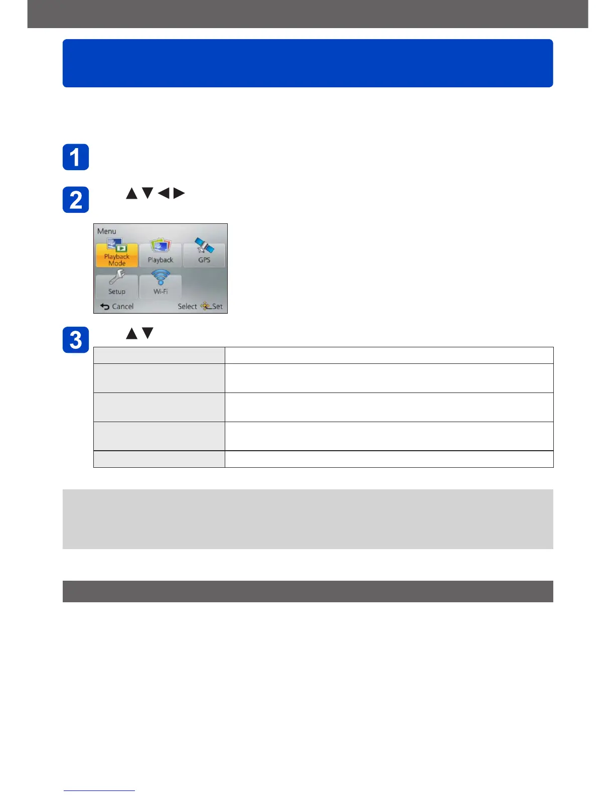 Use to select [Playback Mode] menu and press