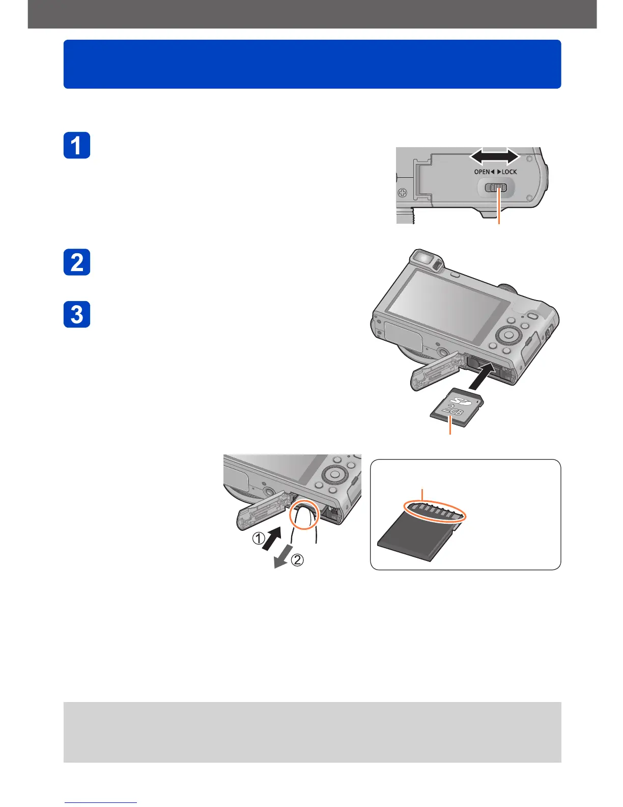 To remove the card, turn the camera off and wait until the LUMIX indicator on the