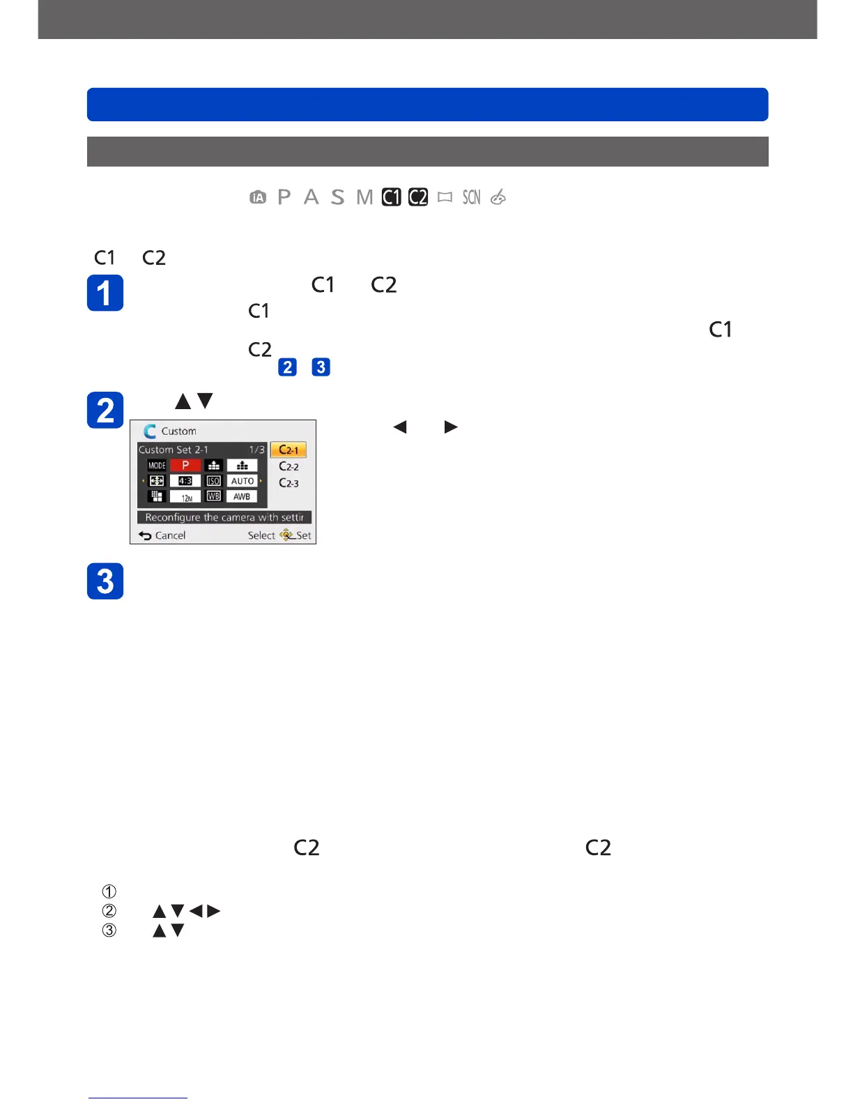 [C2-3] is selected for using the custom set, the currently registered settings will
