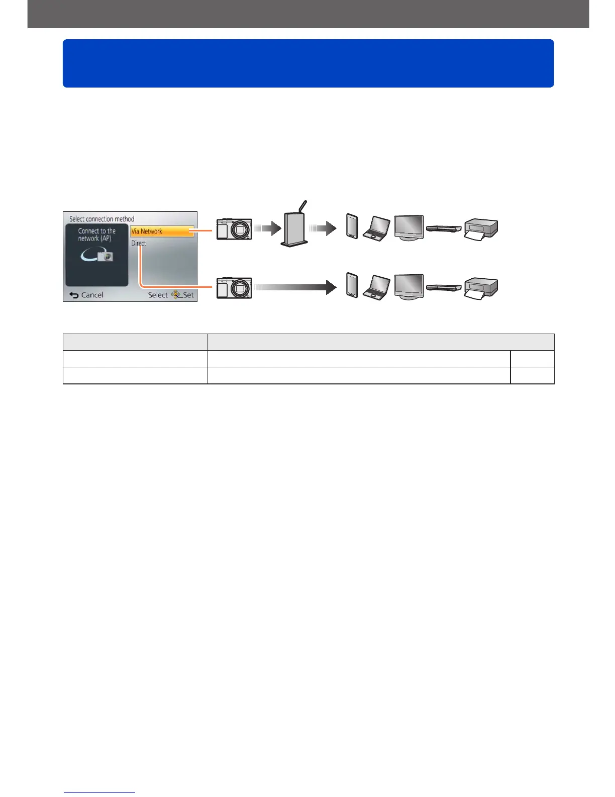 After selecting the Wi-Fi function and sending destination, select the connection method.