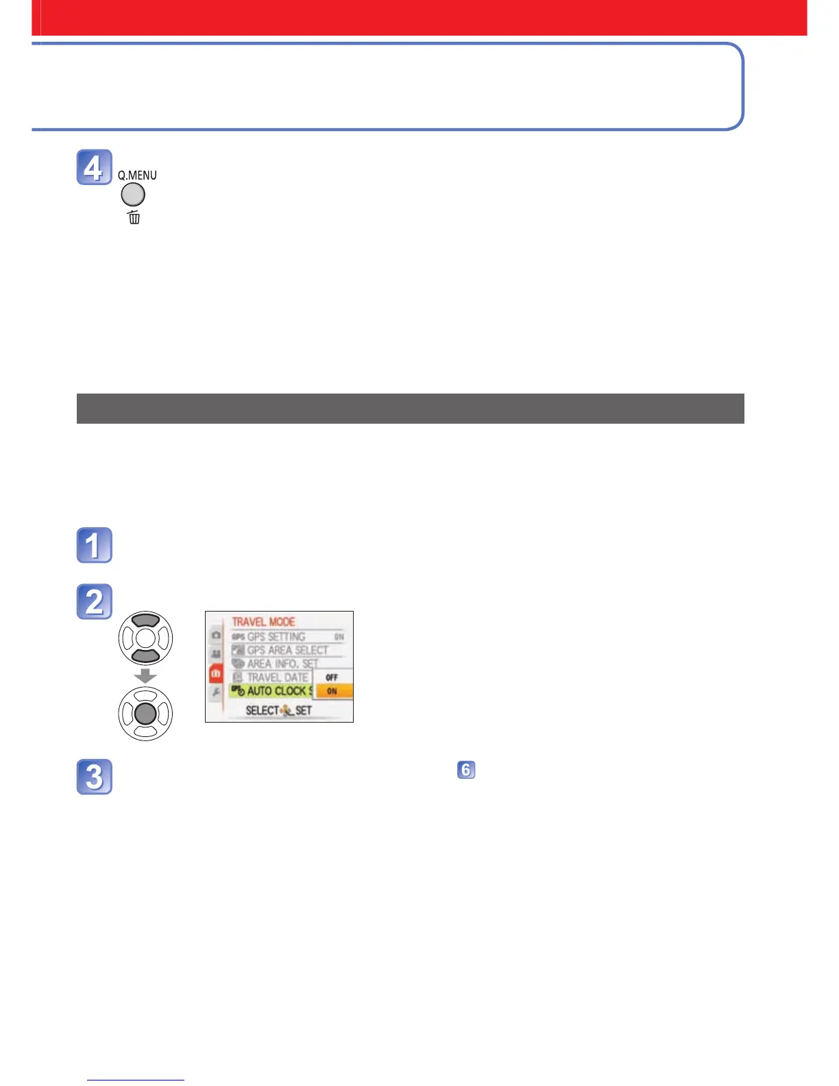Select [AUTO CLOCK SET] (20) from the [TRAVEL MODE]