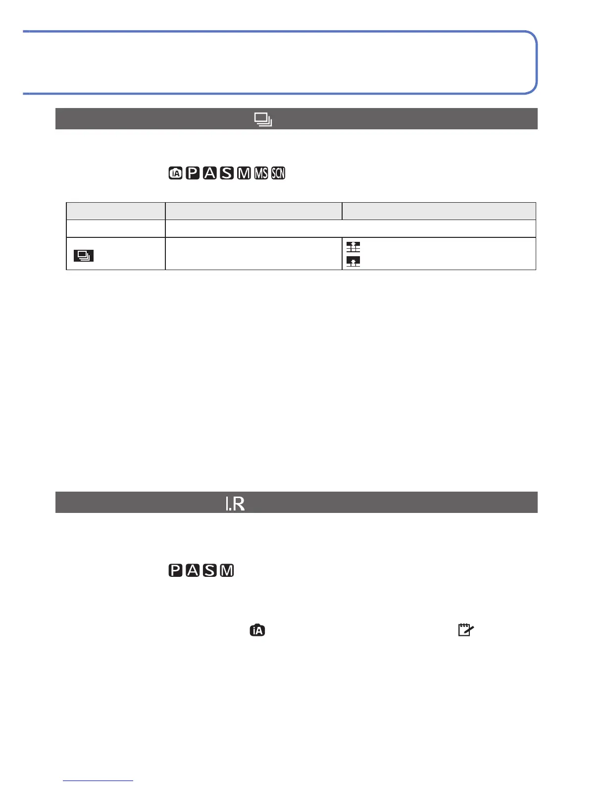 Burst is not available in the Scene Modes [TRANSFORM], [PANORAMA ASSIST], [HI-