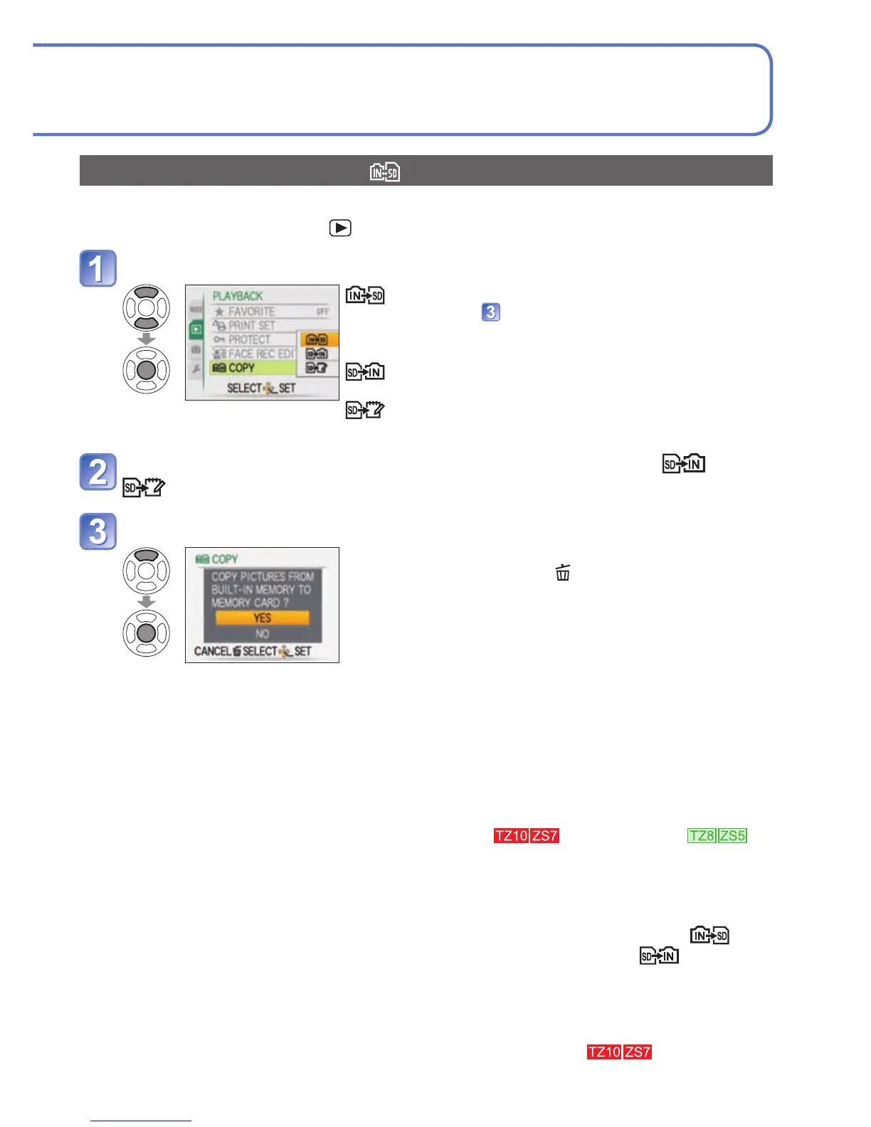 Only pictures from Panasonic digital cameras (LUMIX) may be copied.