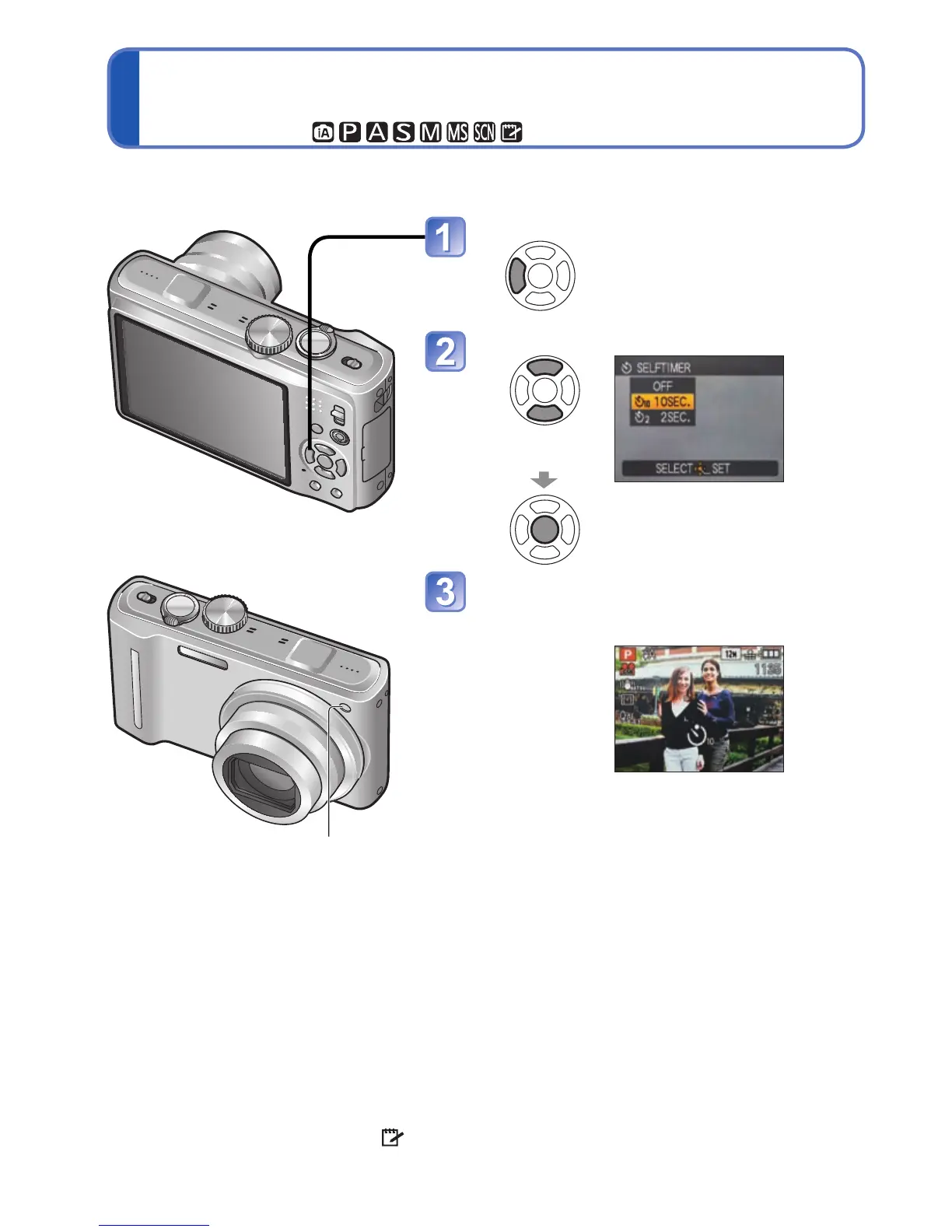 After self-timer lamp stops flashing, it may then be lit for AF Assist Lamp.